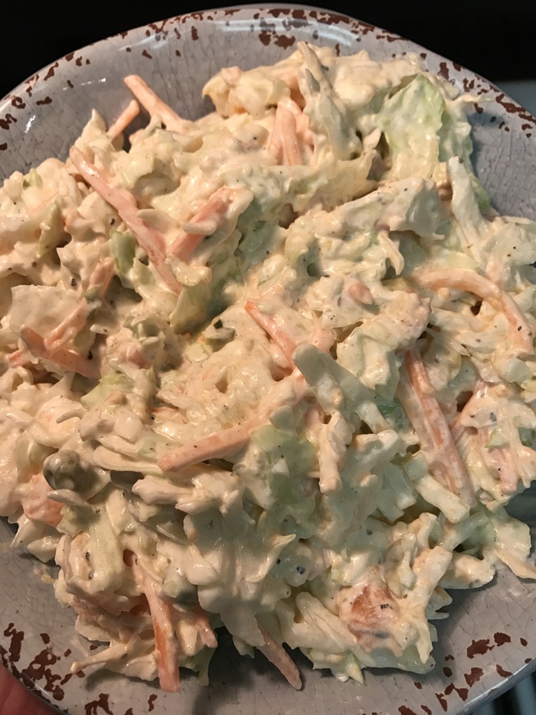 Will need 1 bag of coleslaw, 1 can of mixed vegetables ( drain liquid), 1/2 cup of mayonnaise , 1/2 cup of sour cream, about 1 tsp of salt and black pepper.